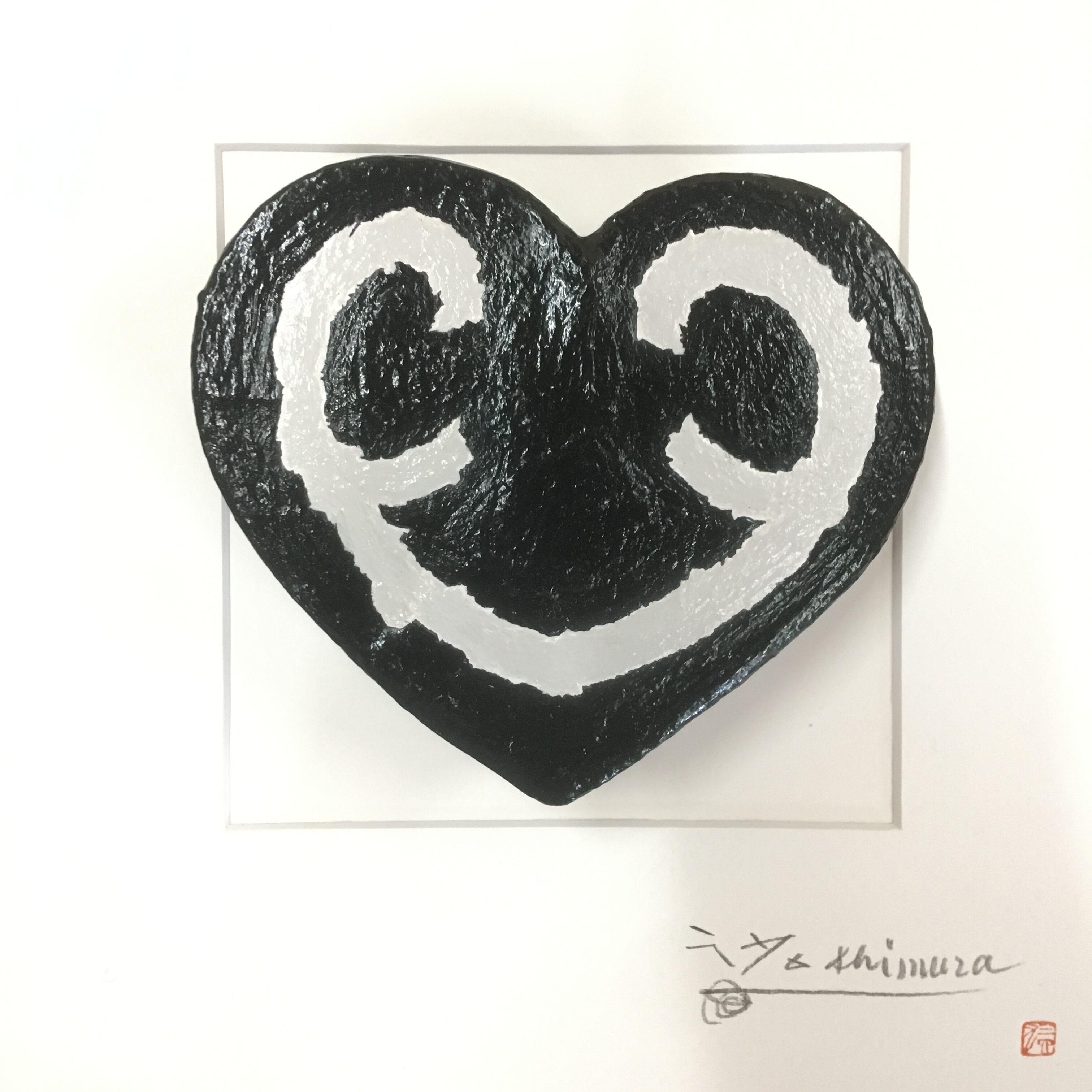 甲骨文字の心の立体作品(ブラック)です。